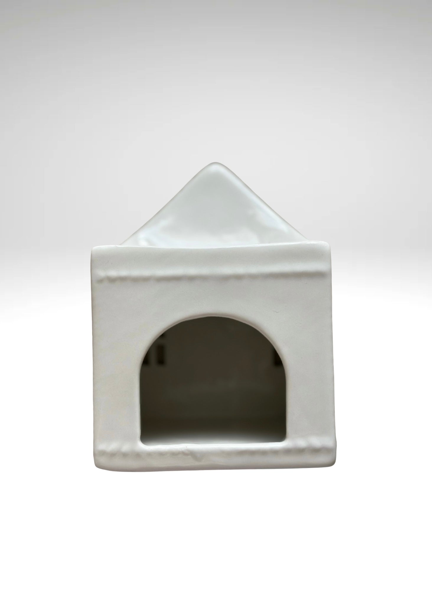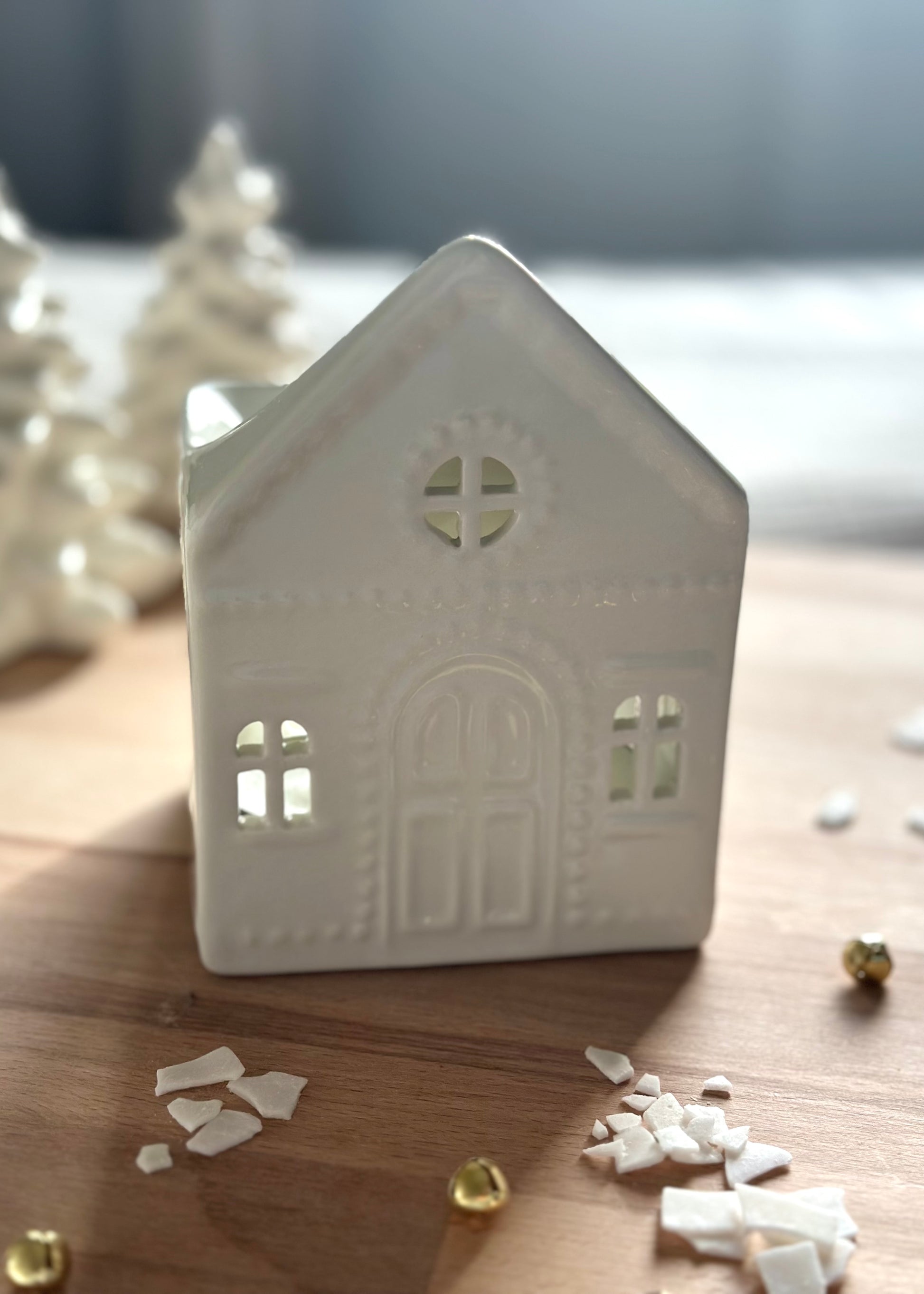 Ce joli brûle-parfum en forme de petite maison apportera une touche de charme et de douceur à votre intérieur. Réalisé en céramique blanche, il diffuse une lumière tamisée et crée une atmosphère chaleureuse dès qu’une bougie chauffe-plat est allumée à l’intérieur.