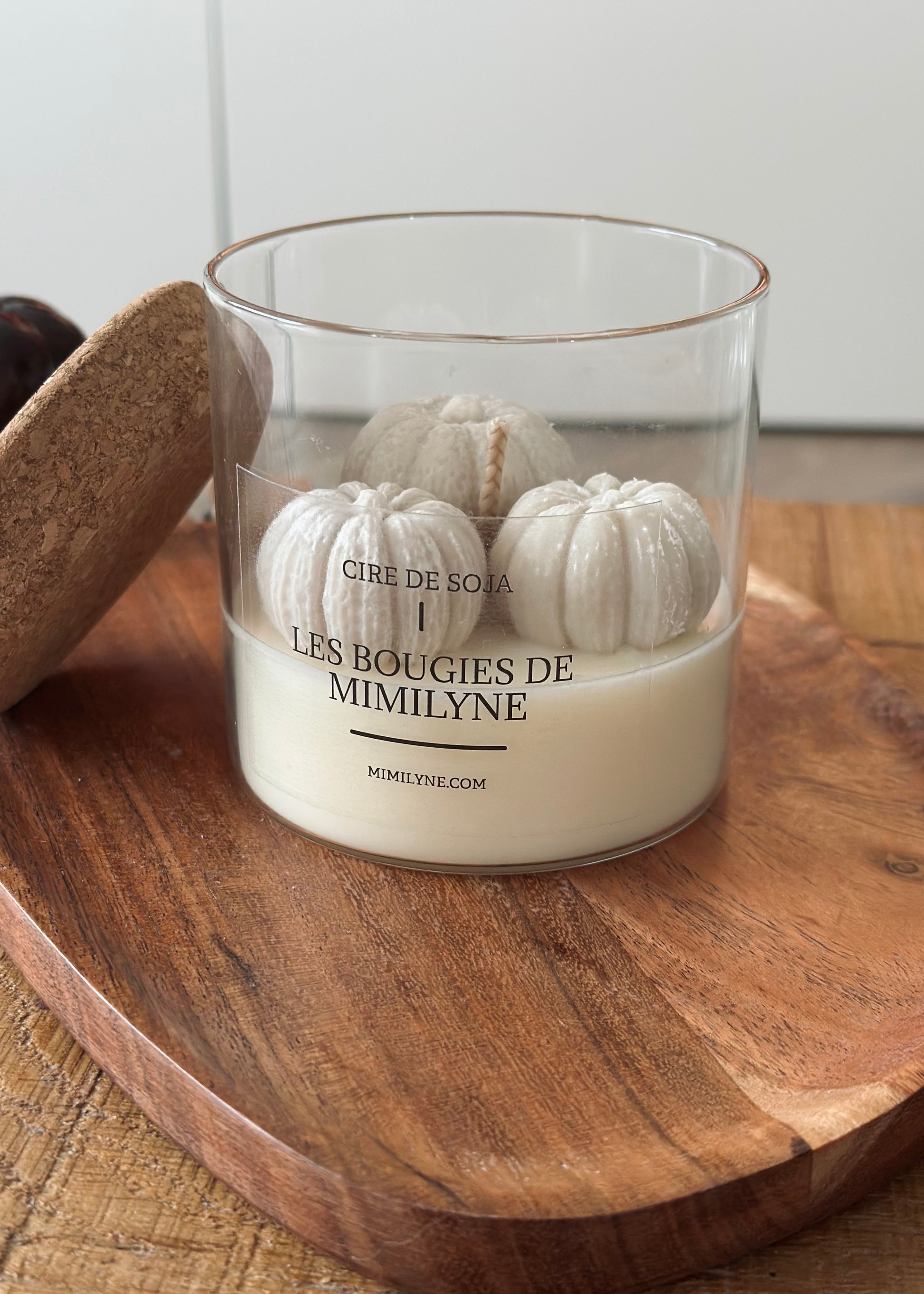 Découvrez notre bougie La Belle – édition Pumpkin, une création unique ornée de trois petites citrouilles qui insufflent une touche automnale et chaleureuse.🍂